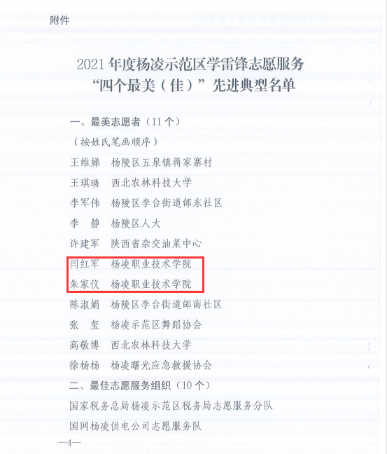 3月1日,杨凌示范区表彰2021年度学雷锋志愿服务“四个最美(佳)”先进典型,经过专家评审、会议研究,共选出11个最美志愿者,10个最佳志愿服务组织,4个最佳志愿服务项目,1个最美志愿服务社区。