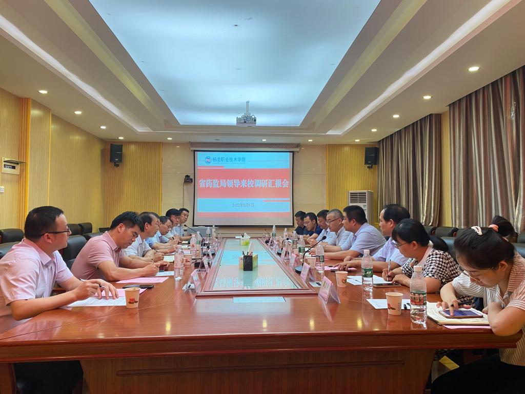 8月9日下午,陕西省药品监督管理局总工程师冯、药品生产监管处长侯鸿军一行5人,来我校就建立药品行业从业人员培训基地事宜开展专项考察调研。杨凌市场监管局书记刘春阳、副局长安兴国,学校副校长胡俊鹏,药物与化工学院党总支书记刘根牢、院长周博继续教育学院负责人黄璞,科技与教育研究处基地办主任王稳江陪同调研