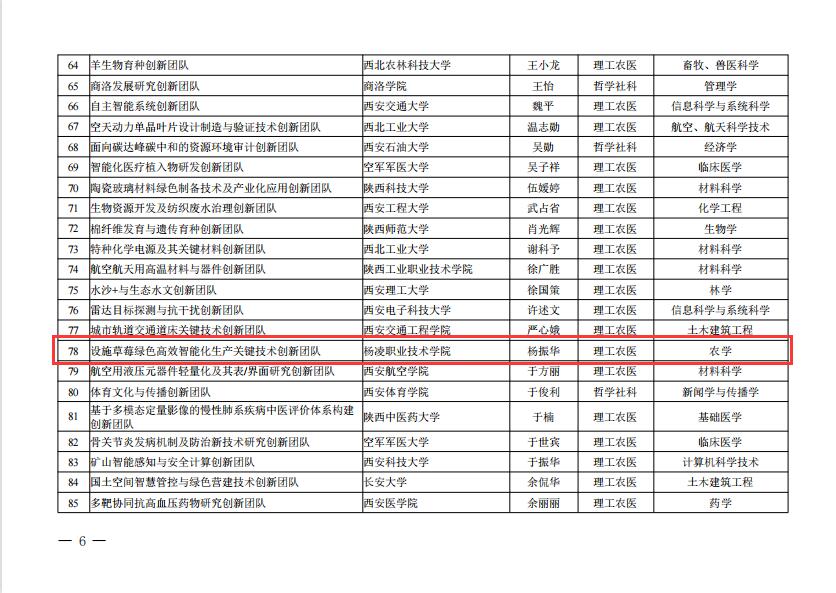 9月2日,省教育厅公布了2022年度陕西高校青年创新团队入选名单,我校杨振华副教授牵头的设施草莓绿色高效智能化生产关键技术创新团队成功入选。