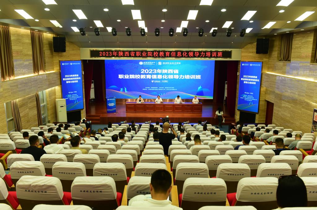 为进一步加强全省教育系统信息化管理队伍建设,7月3日上午,由省教育厅主办、杨凌职院承办、中国电信陕西分公司协办的2023年陕西省职业教育信息化领导力培训开班仪式在南校区思辩堂举办。省教育厅教育信息化处处长李享阳、副处长刘贺英,学校党委书记王周锁、副校长蒋平江,中国电信陕西分公司总经理助理辛公良参加开班仪式,开班仪式由刘贺英主持。