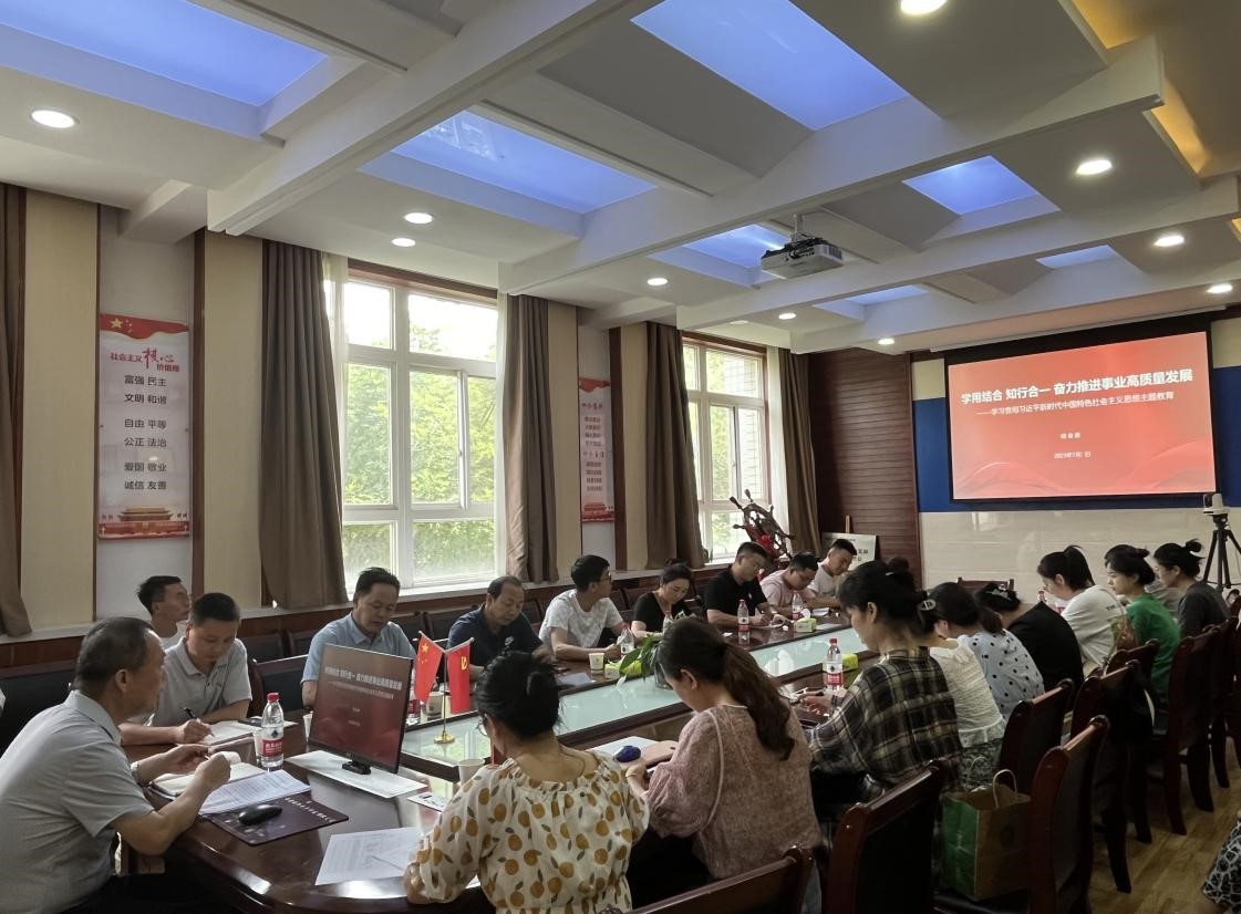 胡俊鹏围绕深刻理解开展主题教育的重大意义,从全面学习习近平新时代中国特色社会主义思想、坚持将思想转化为指导实践的强大力量、抓好机关和干部队伍教育问题检视整改、积极投身教育强国建设、主题教育感悟与启示等六个方面展开讲授。他强调,要牢牢把握主题教育“学思想、强党性、重实践、建新功”的总要求,坚持学思用贯通、知信行统一,进一步深入学习贯彻习近平新时代中国特色社会主义思想。要坚持以学铸魂、以学增智、以学正风、以学促干,积极投身教育强国建设,增强工作的科学性、主动性和创造性,以蓬勃朝气、昂扬锐气、浩然正气全力推进双高建设、新校区建设和升本三大工作中去,充分发挥党员的先锋模范作用。