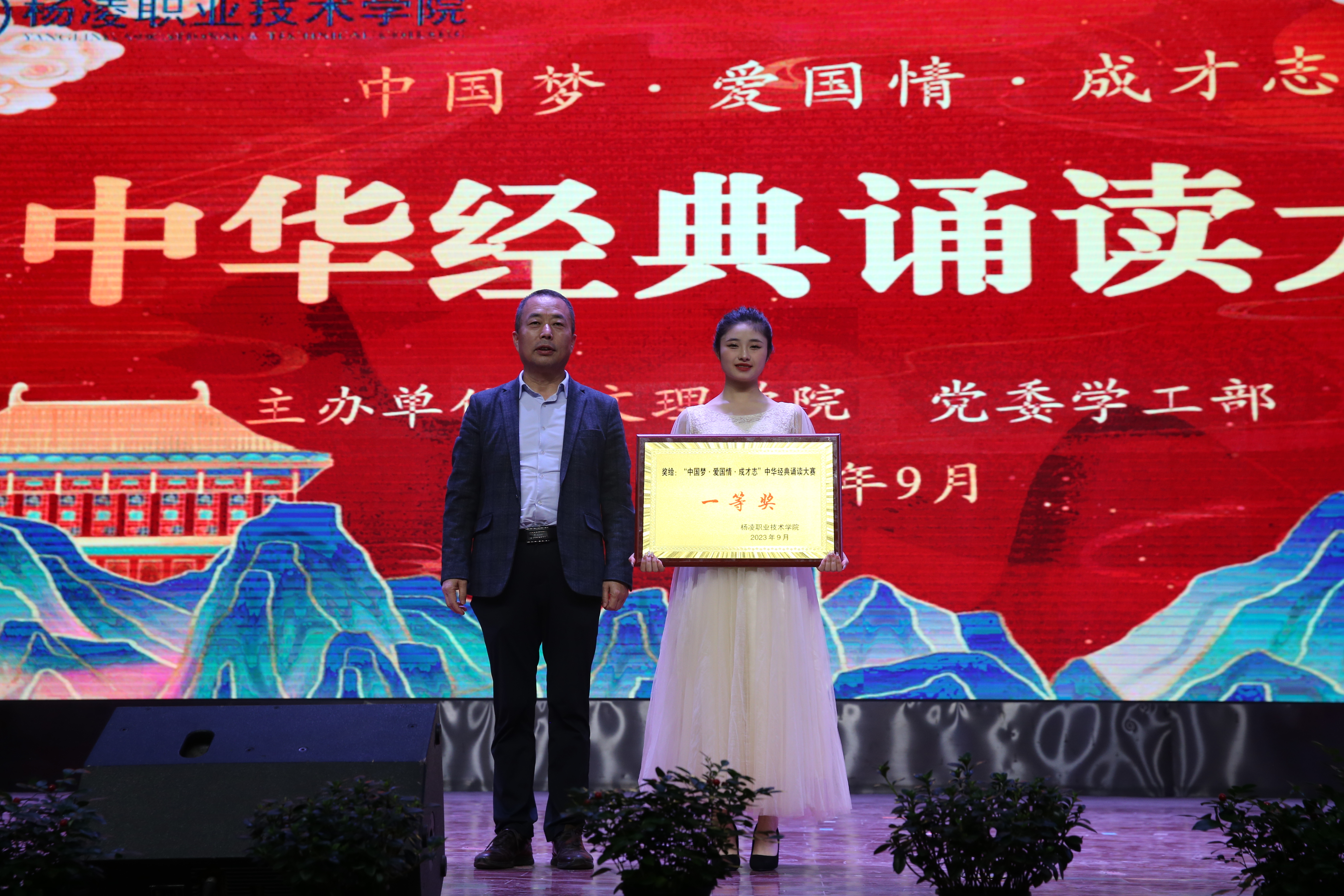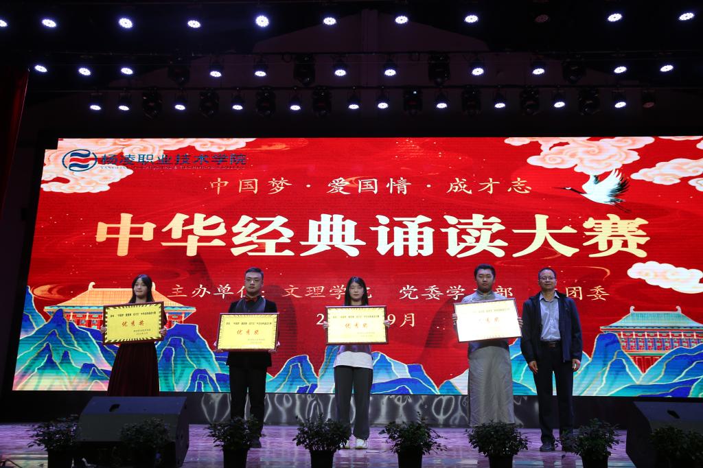 9月26日,我校首届中华经典诵读比赛在南校区大礼堂举行。副校长祝战斌、胡俊鹏出席,组织部部长田争运,党委(校长)办公室主任郑爱泉,党委学工部部长、学生处处长陈军峰,文理学院院长王云江,各二级学院党总支书记、学工办主任、辅导员及学生代表700余人参加了活动。比赛由文理学院、党委学工部、校团委主办,马克思主义学院、文理学院五位教授担任专业评委。