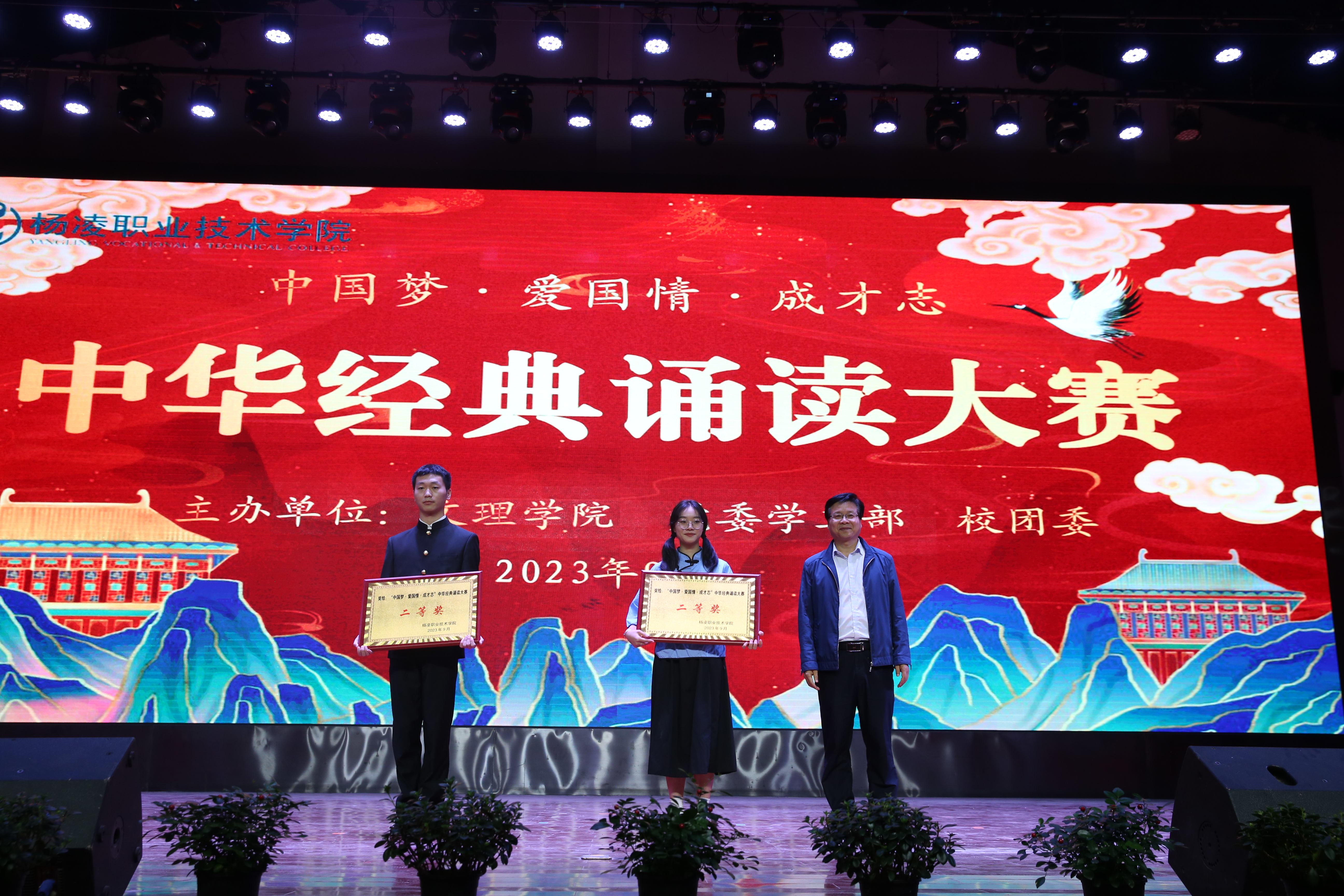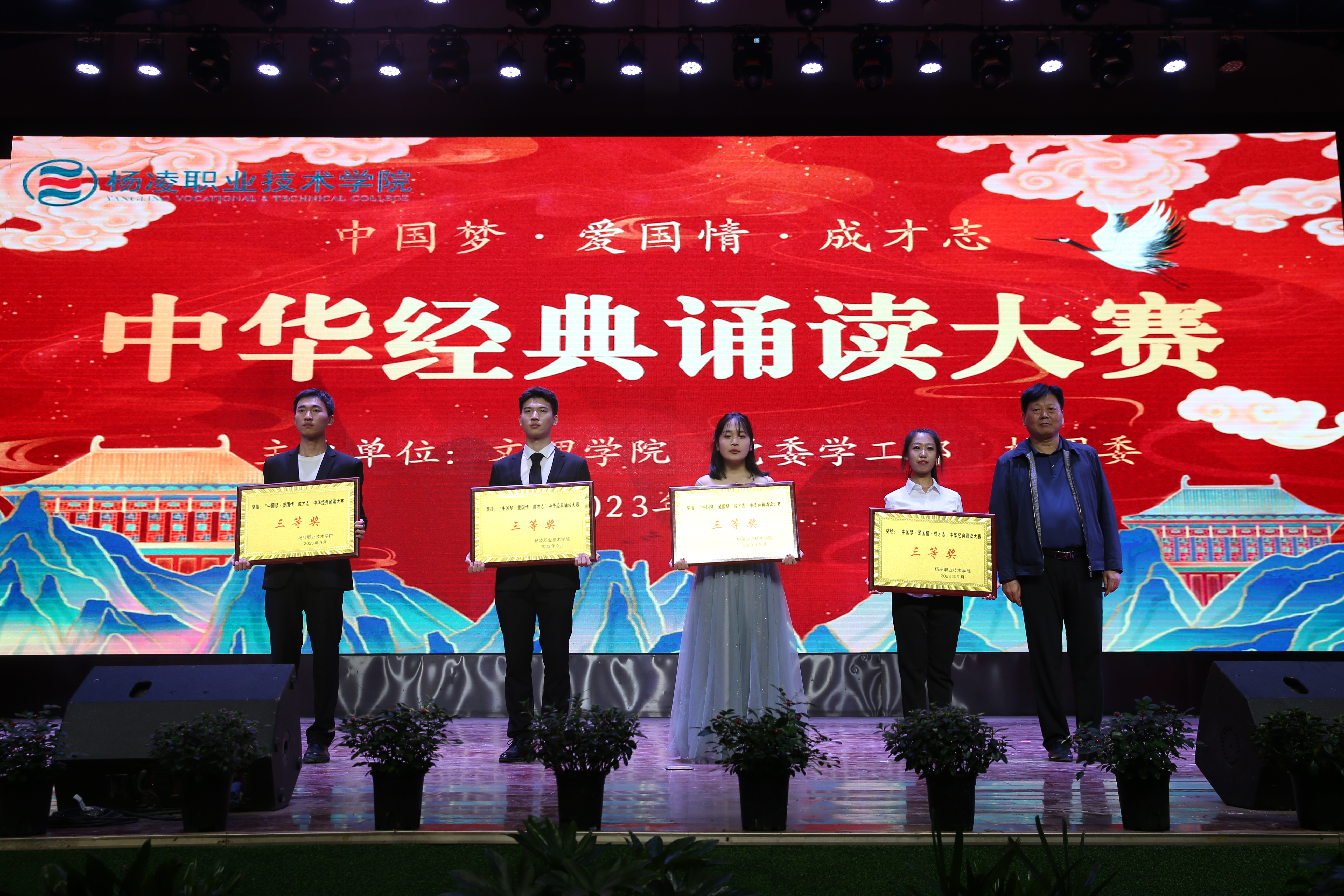 比赛以“中国梦·爱国情·成才志”为主题,旨在引领全校师生重温中华经典,增强爱党爱国情怀。各二级学院选送的11支代表队以独诵、对诵、齐诵等形式展开了近两小时的精彩角逐。动物工程学院代表队荣获一等奖,水利工程学院、机电工程学院代表队荣获二等奖,旅游与管理学院、经济与贸易学院、建筑工程学院、交通与测绘工程学院代表队荣获三等级,信息工程学院、生物工程学院、药物与化工学院、生态环境工程学院荣获优秀奖,动物工程学院、建筑工程学院荣获优秀组织奖,耿仕瑾、缑晶老师荣获优秀指导教师奖。