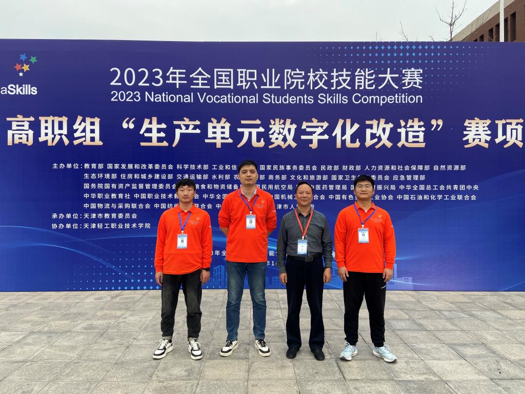 10月11日至13日,2023年全国职业院校技能大赛高职组“生产单元数字化改造(师生同赛)”赛项在天津轻工职业技术学院举办,共有来自全国30个省(市)、自治区的82支代表队、246名选手参加了本次比赛。我校教师李培东和学生李昆伦、南朝辉组成的代表队荣获三等奖。