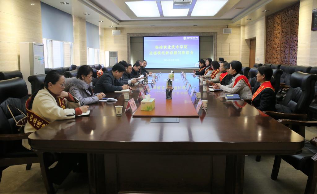 1月30日下午,学校召开道德模范新春慰问座谈会,党委副书记刘瑞明出席会议并讲话。学校获评陕西好人、杨凌示范区历届道德模范、杨凌示范区第二届文明家庭等道德典型参加座谈会。会议由党委委员、宣传部长裴红波主持。