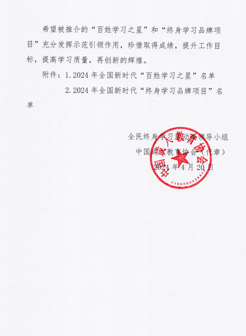 学校获评全国和陕西省新时代“终身学习品牌项目”