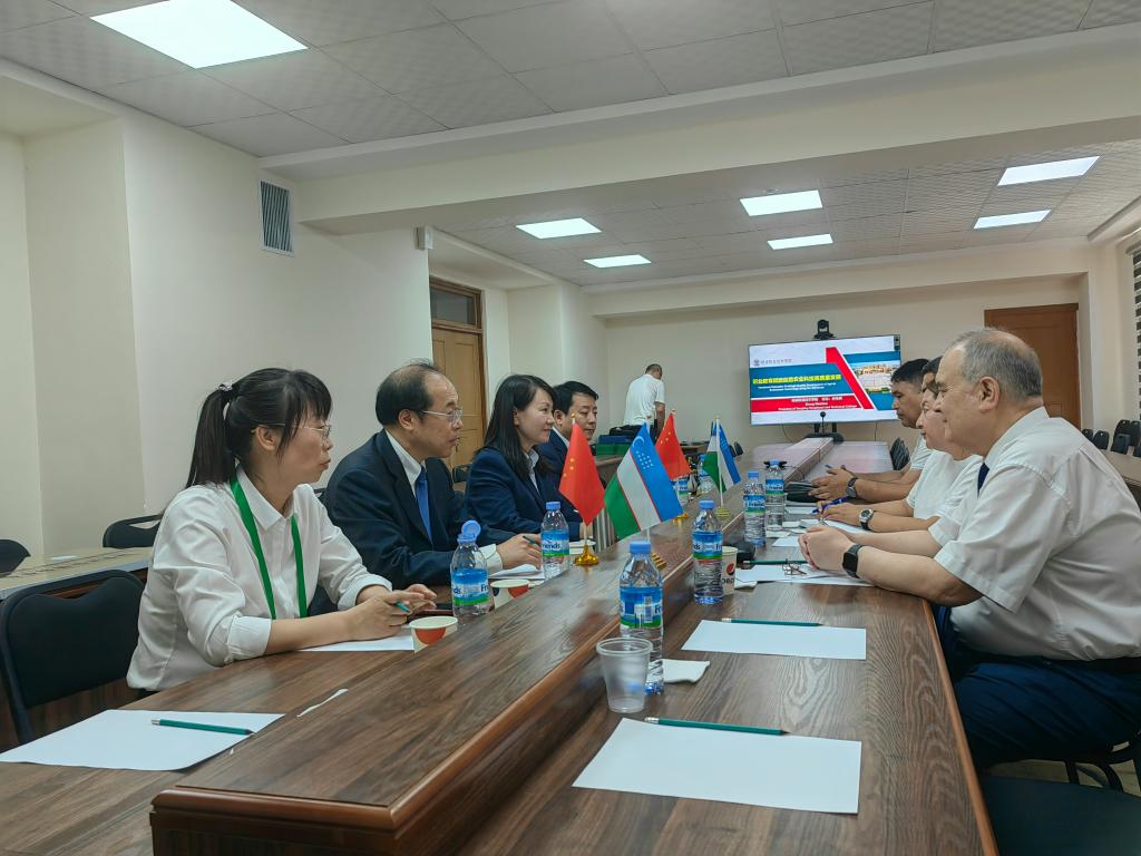 在乌兹别克斯坦古利斯坦国立大学,仲伟周实地参观了该校农业园和生物工程、物理、艺术等学院的教学设施与条件,并与该校就双方开展国际合作的内容和方式进行了深入交流。双方在专业技术技能培训、师生交流、基地建设等方面达成合作意向,签订了《专业技术技能培训项目合作协议书》,仲伟周向古利斯坦国立大学授予“杨凌职业技术学院-古利斯坦国立大学专业技能培训基地”牌子。