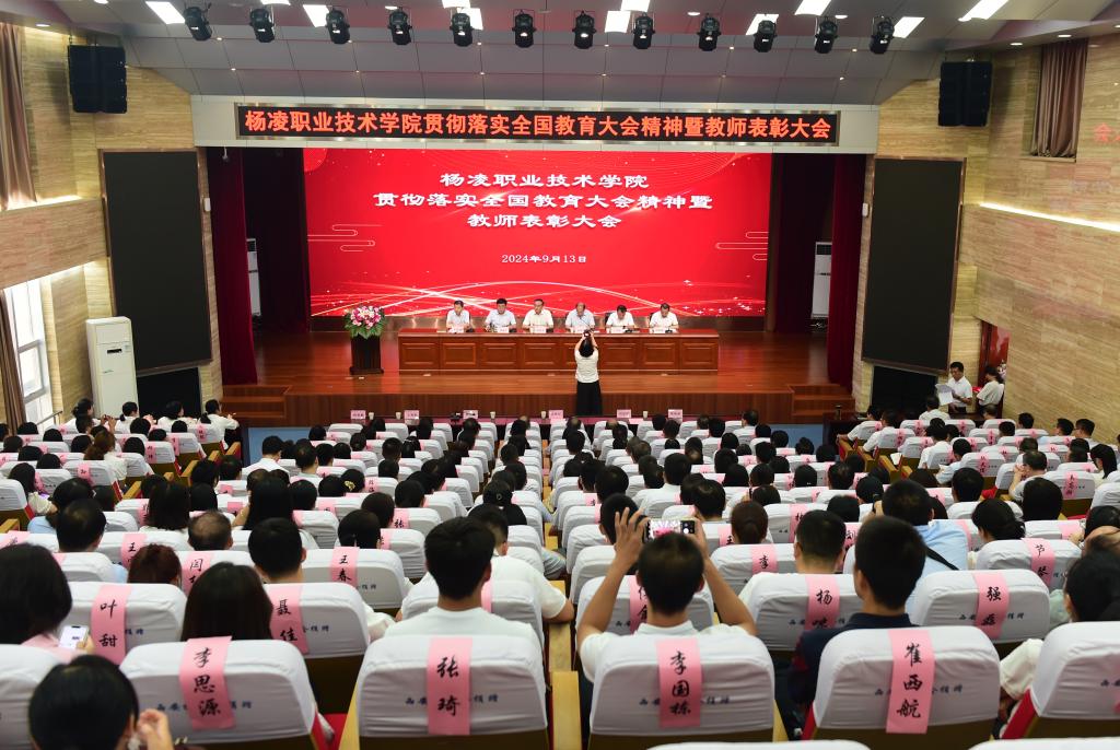 韩明军在讲话中,代表学校党委向全体教职工致以诚挚的问候,向老师们的辛勤付出和努力工作表示最崇高的敬意向受到表彰的教师们表示热烈祝贺,并介绍了一年来学校取得的一系列标志性成果和显著发展成就。他指出,习近平总书记在全国教育大会上的重要讲话,为新时代广大教师的职业追求指明了方向、提供了根本遵循。强调,作为教师,一是要守初心、担使命,做从教报国的践行者;二是要树品行、提能力,做立德树人的大先生;三是要抓教书、重育人,做学生成长成才的引路人;四是要挑重担、勇向前,做学校发展的推动者。希望广大教师认真学习贯彻落实全国教育大会精神,不忘初心、不辱使命,自觉维护学校形象和利益,在杨凌职院这个大舞台上,继往开来、不懈奋斗,奋力书写当代杨职人躬耕教坛的精彩答卷,努力开创学校事业发展的崭新篇章。
