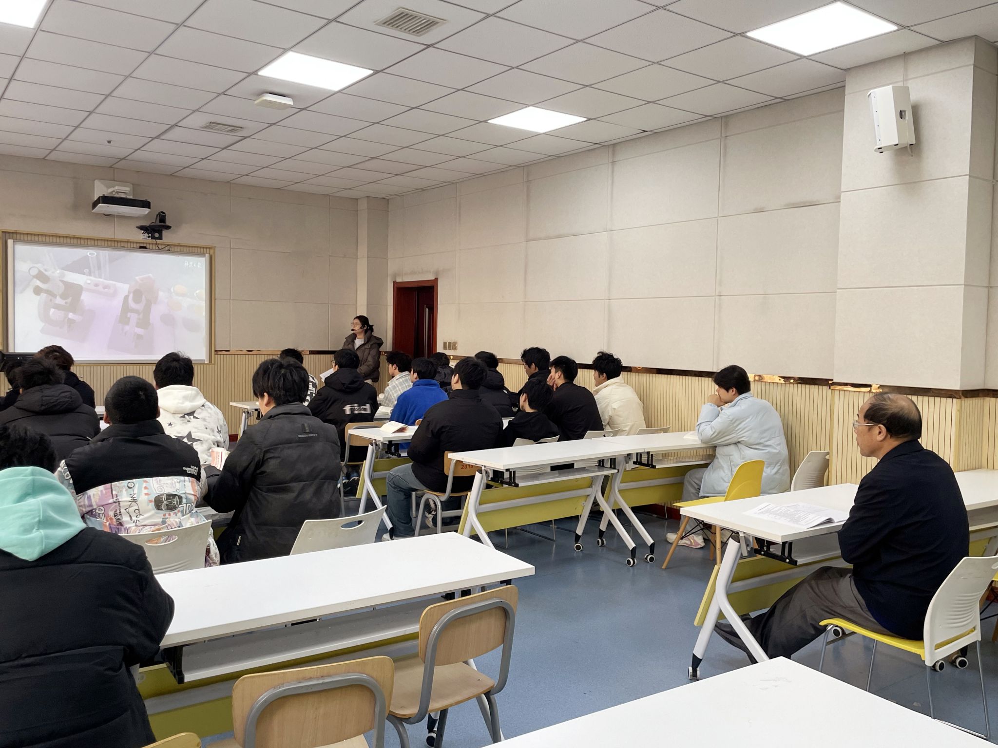 12月25日下午,仲伟周以《毛泽东思想和中国特色社会主义理论体系概论》课程中的科学发展观为授课内容,为机电工程学院工业机器人技术23007班讲授了一堂生动的思政课。讲课过程中,他把思政小课堂同社会大课堂结合起来,立足世界发展大局和中国发展大势,从“粮票”到“移动支付”,从粗放型经济向集约型经济转型,他引经据典,循循善诱,以“小切口”讲解“大主题”,从是什么、为什么、有什么、做什么四个维度深入浅出地讲述了科学发展观的科学内涵、提出背景、主要内容和实践成果,强调了“发展才是硬道理”的深远意义。在和同学的亲切互动中,他勉励大家不忘来时路,珍惜青春韶华和新时代的发展机遇,将个人发展融入国家需要和社会发展中,为强国建设和民族复兴伟业贡献青春力量。