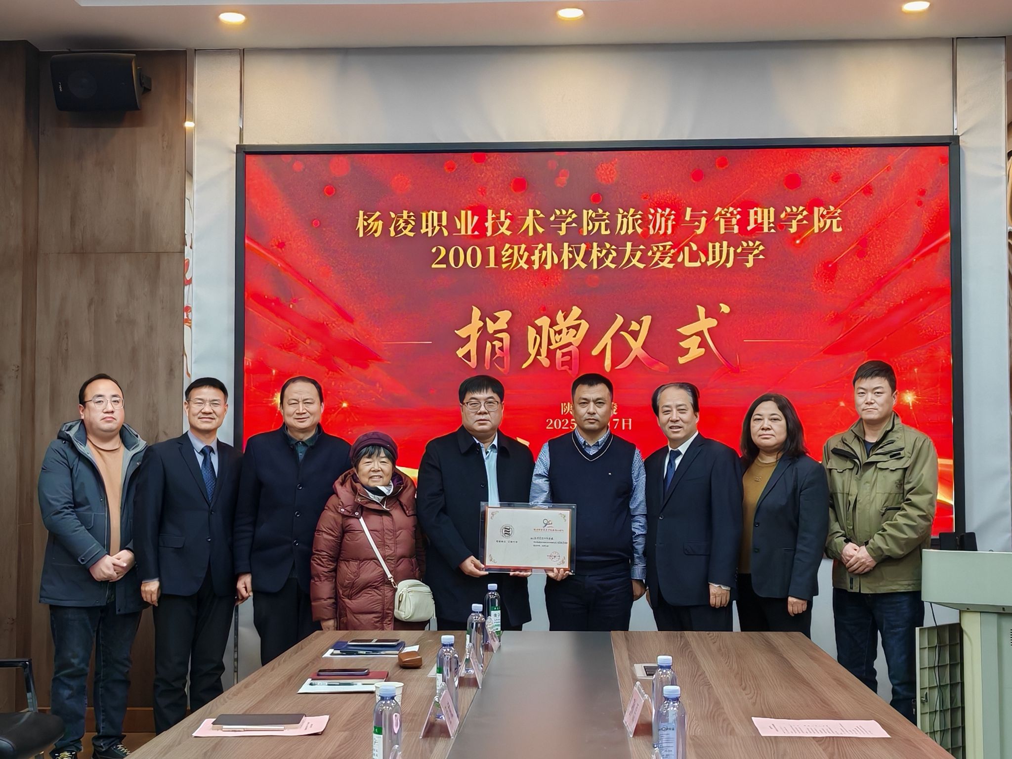 1月7日,学校举行旅游管理专业2001级优秀校友孙权座谈会暨捐赠仪式。党委副书记刘瑞明出席座谈会暨捐赠仪式。陕西汇鼎丰建筑劳务公司总经理、2001级校友孙权参加座谈会暨捐赠仪式。