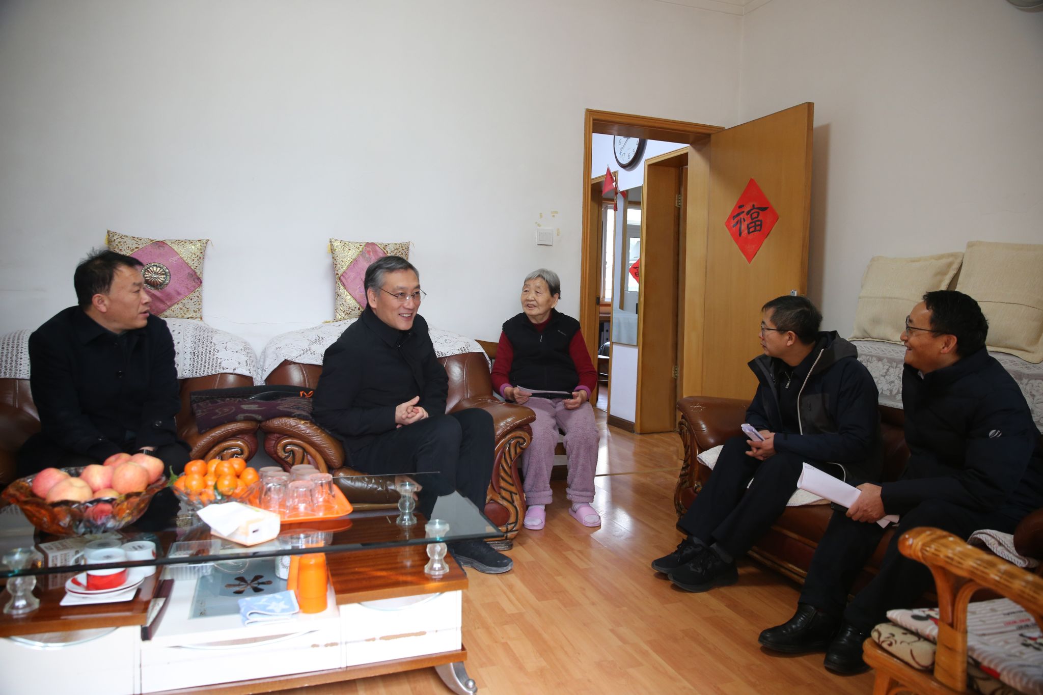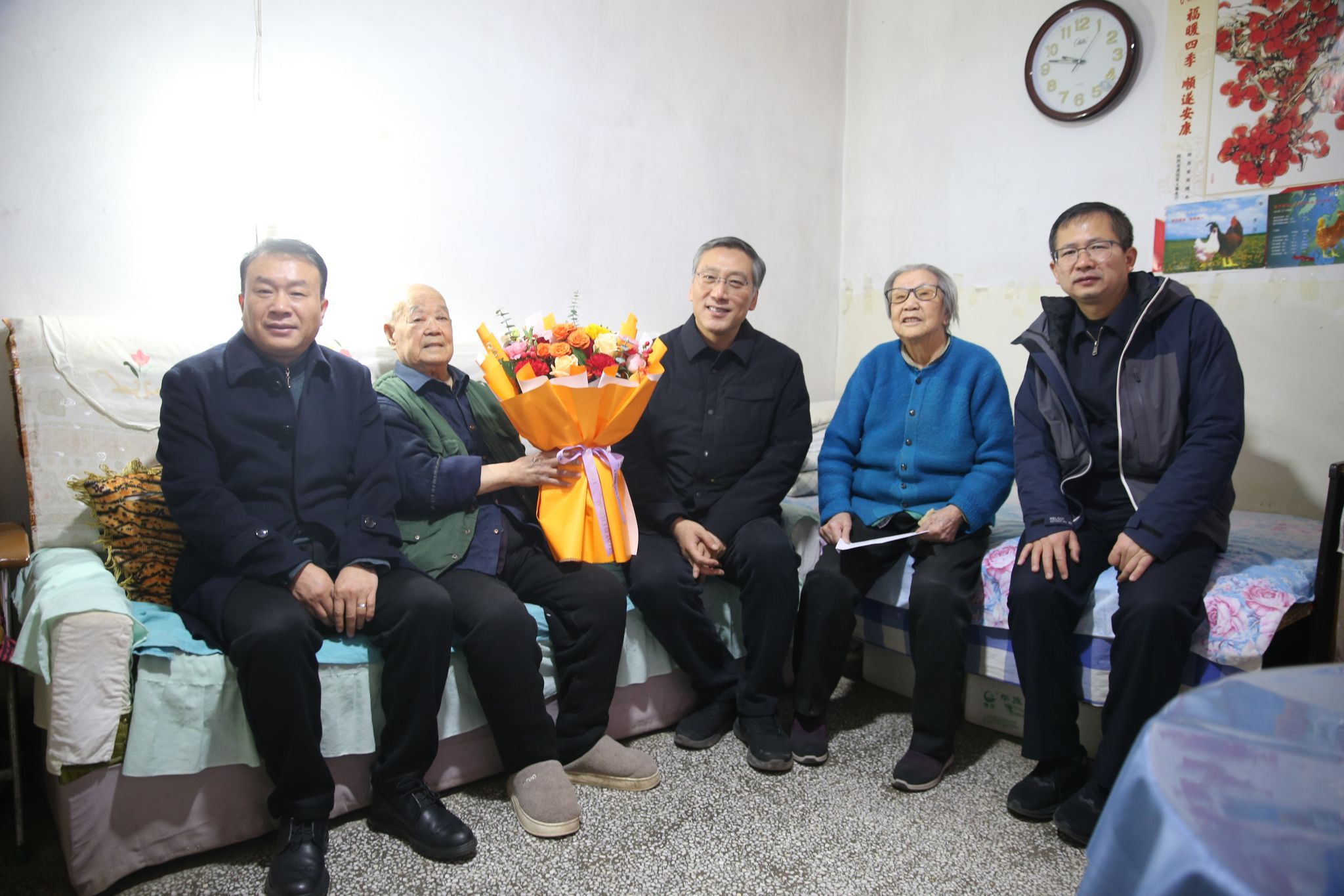 在老同志家里,校领导与离退休老同志亲切交谈嘘寒问暖,关切地询问他们的身体情况生活近况和家庭情况,认真听取了他们对学校发展的意见建议高度评价了老一辈教育工作者为学校教育事业发展所做出的卓越贡献,表示正是有了他们的辛勤耕耘与无私奉献,才奠定了学校坚实的发展基础,成就了今日的辉煌成就,希望离退休老同志保重身体,继续关心和支持学校的改革与发展,为学校的美好未来建言献策。强调要一如既往地做好离退休老同志的服务保障工作,在政治上多关心,思想上多沟通,生活上多关照,精神上多关怀;要发挥好老同志的政治优势、经验优势和威望优势,助力学校事业高质量发展;要不折不扣的落实好老同志的各项福利待遇,让他们心情舒畅地安享晚年、颐养天年。