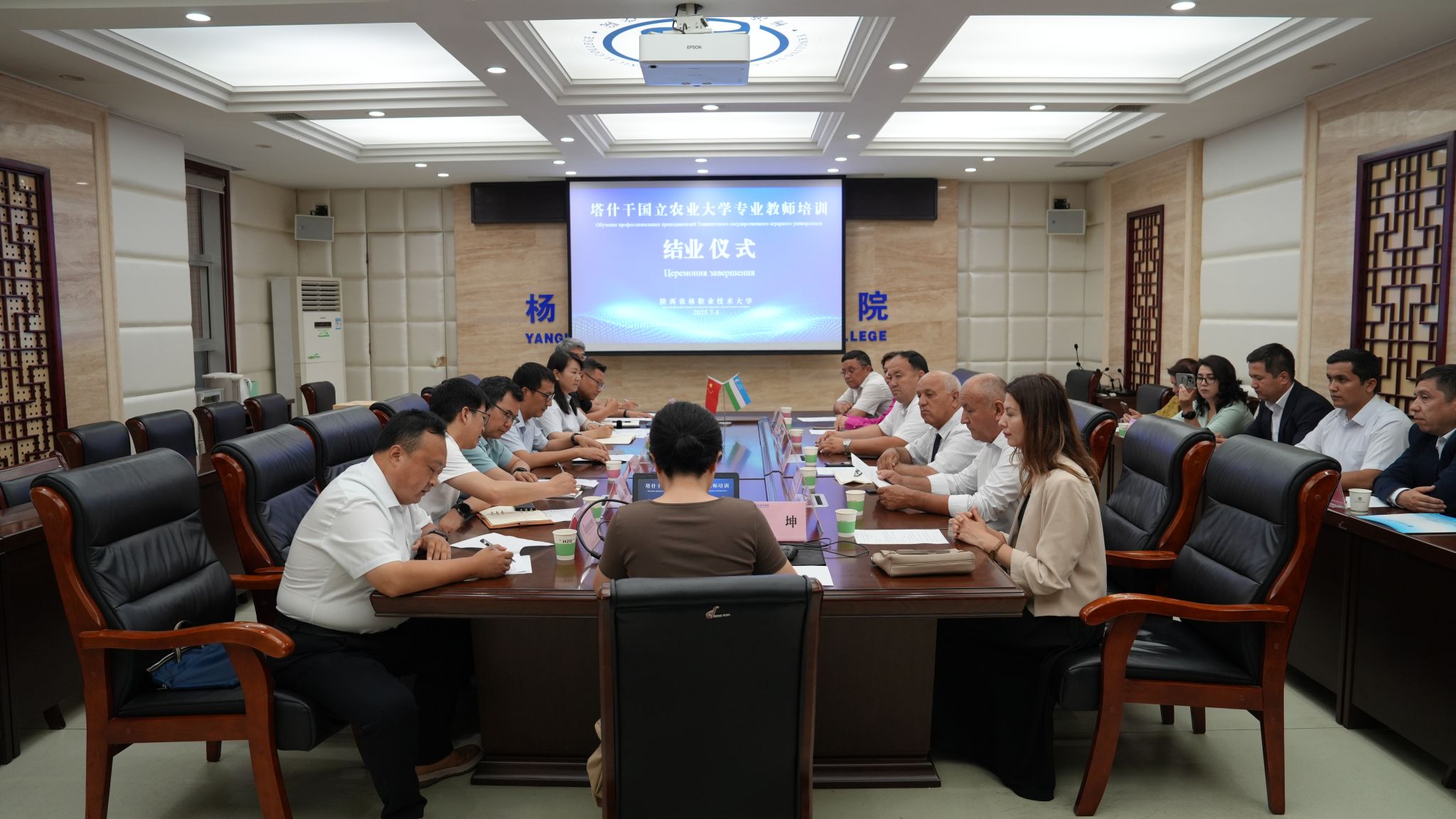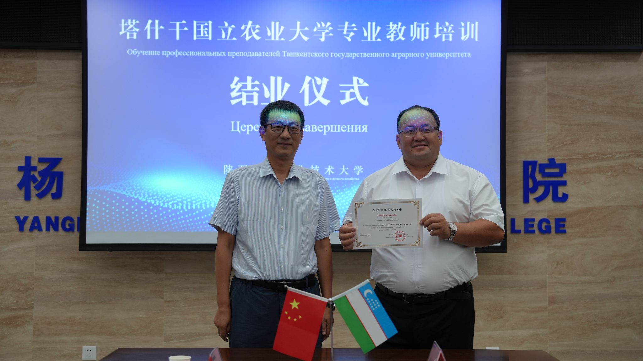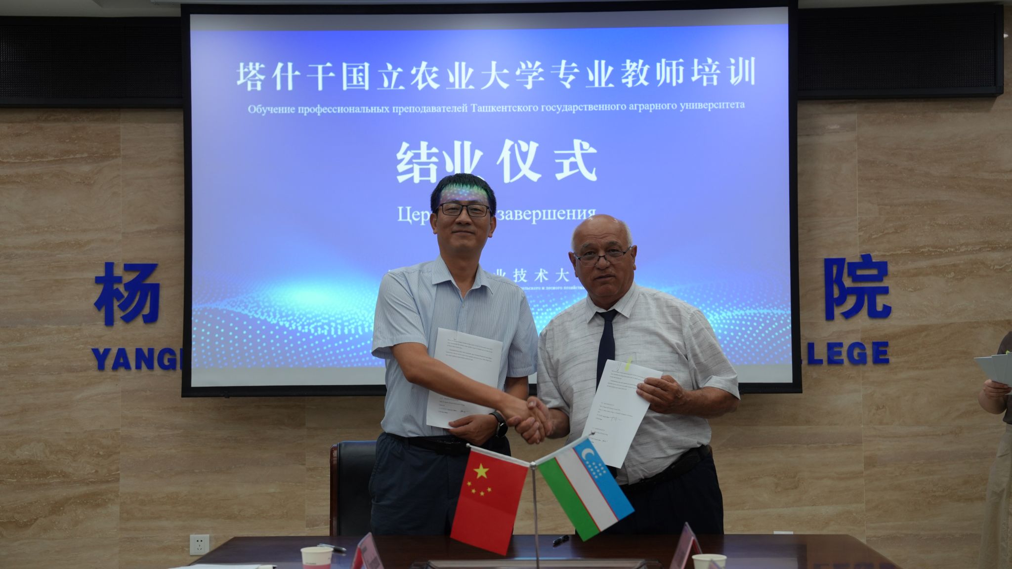 结业仪式上,塔什干国立农业大学、锡尔达里亚农业技术学院、扬吉尤尔区第二职业技术学院等8所学院与我校签订了国际合作协议。蒋平江希望以此次培训为契机,推进师生互访、联合科研等深度合作。锡教师团代表尔达里亚农业技术学院院长阿迪洛夫・阿卜杜拉・纳维奇(Adilov Abdurazzoq Namazovich)对培训成效进行了高度评价。