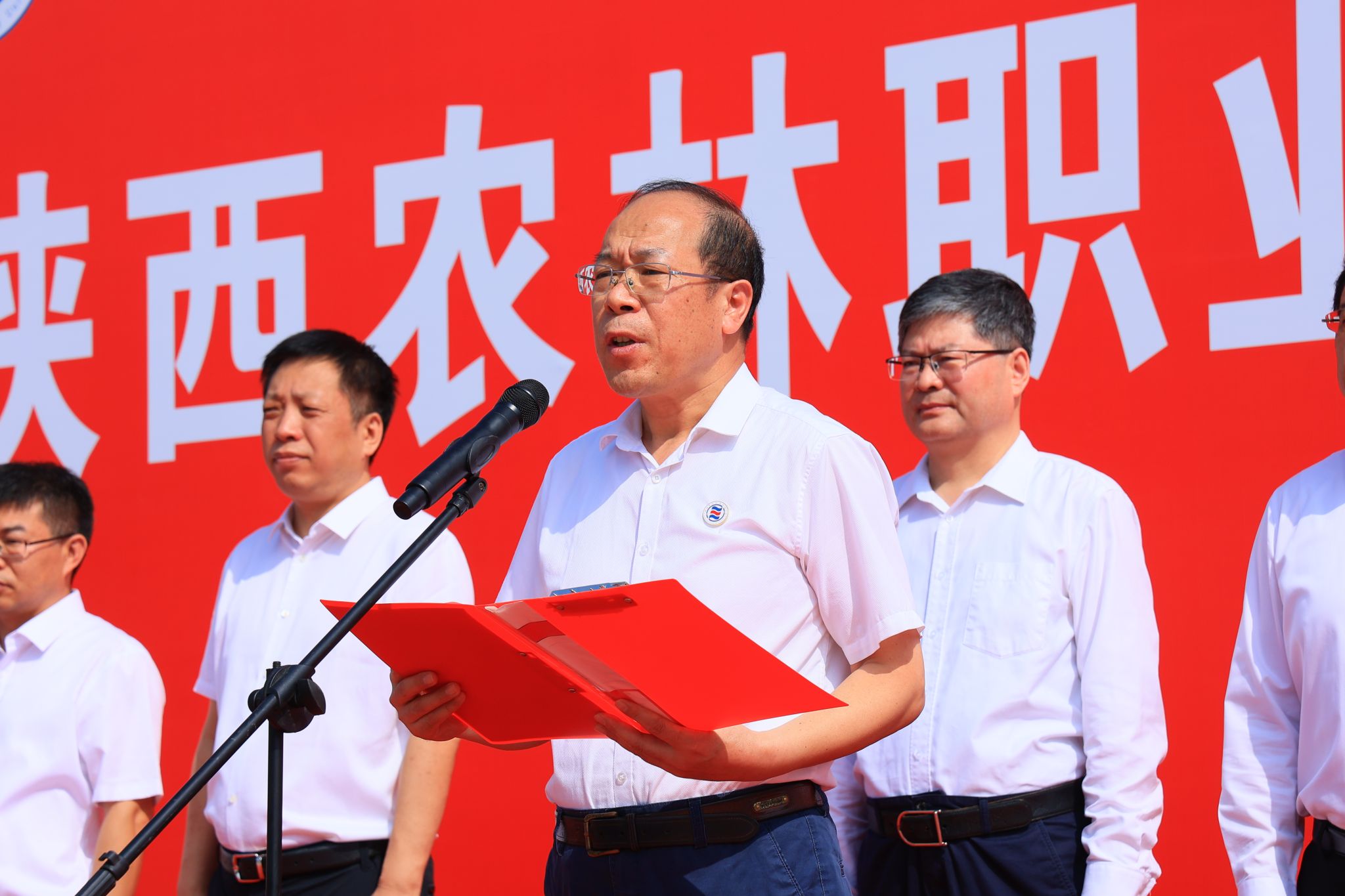 出席仪式领导与陕西农林职业技术大学校牌合影