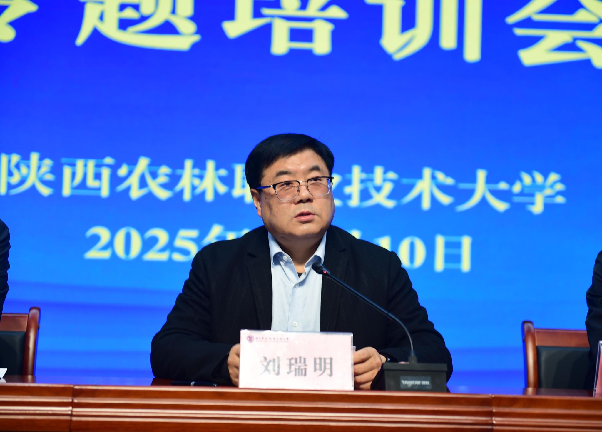 11月10日下午,学校在思辨堂举办2025年办公室系统专题培训会。校党委副书记刘瑞明、杨凌示范区党工委管委会办公室副主任曹斌昌出席。党委(校长)办公室负责人、全体科级干部、辅导员和党委(校长)办公室全体人员参加培训。