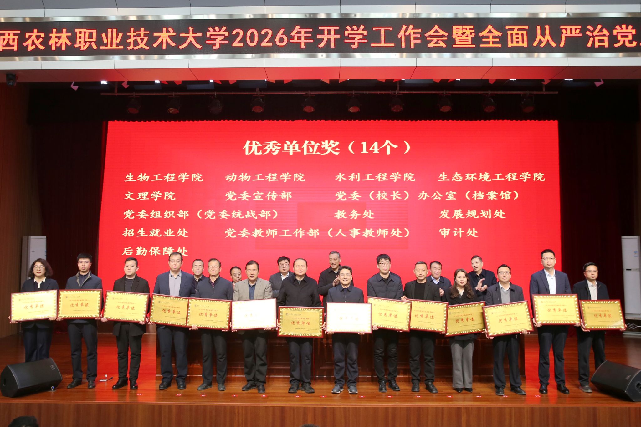 会上,党委副书记刘瑞明宣读《关于表彰2025年度考核优秀单位和个人的通报》。学校领导为考核优秀单位颁发奖牌、为优秀个人代表颁发荣誉证书。