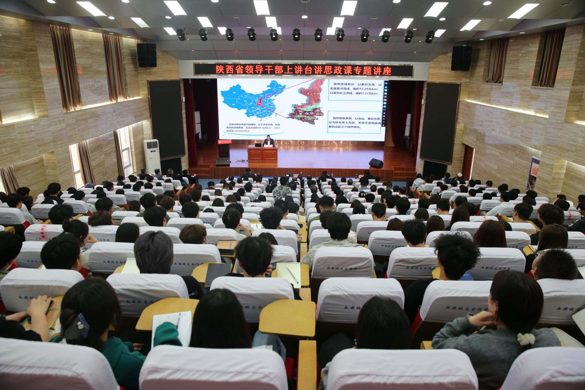 专题讲座中,程子勇结合陕西水情实际与长期水利工作实践,系统阐释习近平总书记“节水优先、空间均衡、系统治理、两手发力”治水思路,全面介绍陕西水情特点、治水历史成就与水利发展成效,深入解读陕西水网“两域贯通、三区互联、多库联调、五纵十横”总体布局,详细介绍引汉济渭、东庄水利枢纽等重大水利工程建设进展,深刻阐明水利事业在保障国计民生、生态安全、粮食安全和区域高质量发展中的重要支撑作用。报告内容丰富、数据翔实、案例鲜活,兼具思想性、实践性和指导性,使在场师生深受教育、备受启发。