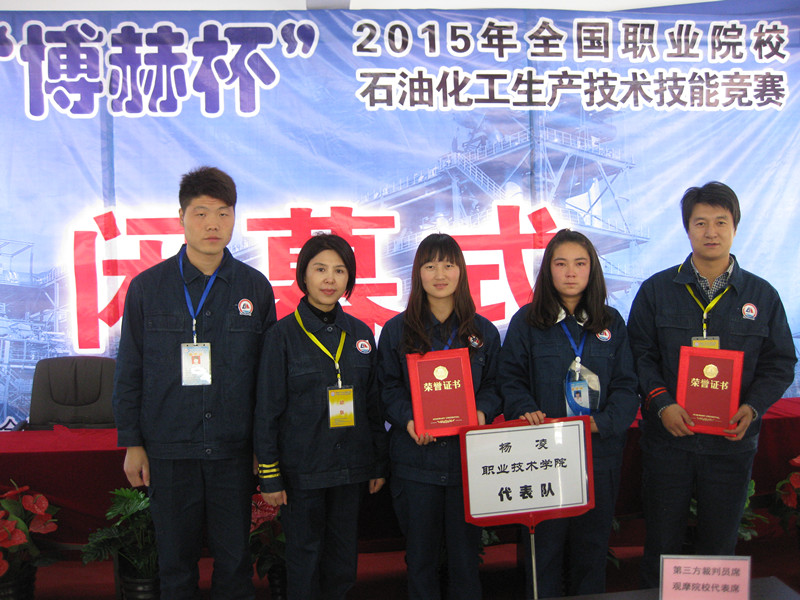 10月23日至25日,“博赫杯”2015年全国职业院校石油化工生产技术技能竞赛在秦皇岛市举办,我院药物与化工分院3名参赛选手协同配合,冷静发挥,经过三天的激烈比赛,最终获得团体二等奖。