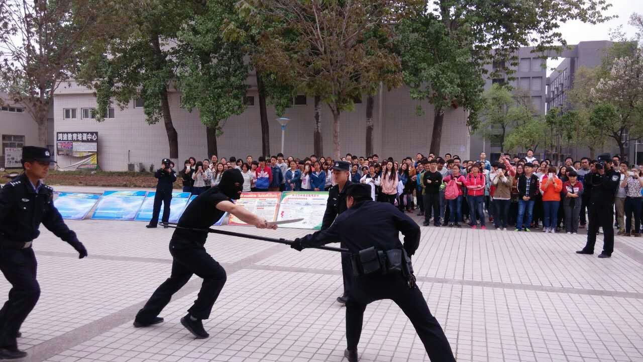 ——开展校园安全防范教育培训活动。4月14日下午,由杨凌区公安局和学院学生与保卫处共同组织,在西校区举行了校园安全防范教育培训活动。杨凌区公安局副局长霍建科、我院学生与保卫处负责同志、示范区公安局数十名干警、学院校卫队保安和西校区师生代表共计400余人参加。活动现场,公安干警对警务装备、管制刀具一一进行了展示;并结合在校大学生的身心特点,以案说法,紧紧围绕校内外活动安全、消防安全、防止有意伤害等方面内容进行了安全教育;还对校园保安人员进行了治安防范培训,展示和模拟演练了警务器材的使用方法。此外,师生们还结合日常生活中遇到的电信诈骗、抢劫、碰瓷等问题,与公安干警进行了现场交流。公安干警细致、详尽的讲解赢得了师生们由衷的敬佩和阵阵掌声,现场气氛热烈。