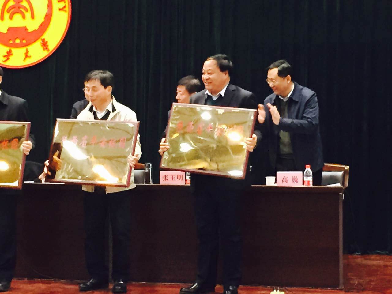 院长王周锁上台领取“陕西省平安校园”奖牌