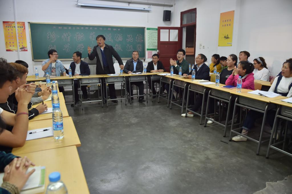 随着王周锁院长的点名,40名玉树班的同学们脸上洋溢着欢笑,挨个向王周锁院长问好。在欢快的气氛中,伴随着一声声问好,院长王周锁一一与玉树水利订单班的同学们认识。这是4月18日晚上七点半左右,在我院天润楼324教室里发生的一幕。