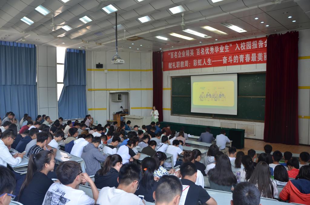 5月8日下午,西校区台阶教室座无虚席、掌声阵阵,动物工程分院“百名企业精英、百名优秀毕业生入校园”、“献礼职教周:彩虹人生——奋斗的青春最美丽”报告会在此隆重举行。西安你我它宠物有限公司经理王秋阳、西安零度人力资源管理有限公司总经理关敏应邀作报告,分院党总支书记、学工办主任、各教研室主任、部分专业课教师及学生代表350余人聆听了报告。