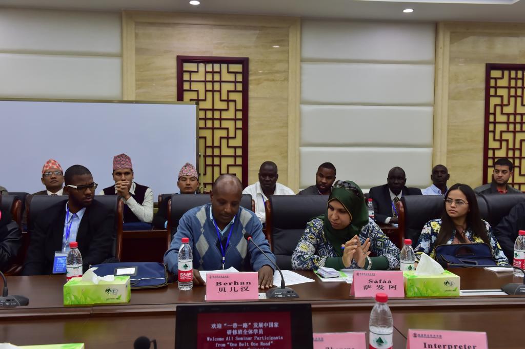 会上,王周锁首先向来我院培训学习的“一带一路”发展中国家研修班全体学员表示热烈欢迎,并详细介绍了学院办学基本情况。他要求,学院代课教师要充分发挥学院在实用技术方面的优势,认真备课、精心施教,为发展中国家农业发展提供技术支持与帮助。同时,他希望发展中国家研修班全体学员在培训期间,主动与学院教师积极交流,互相学习,互通有无。