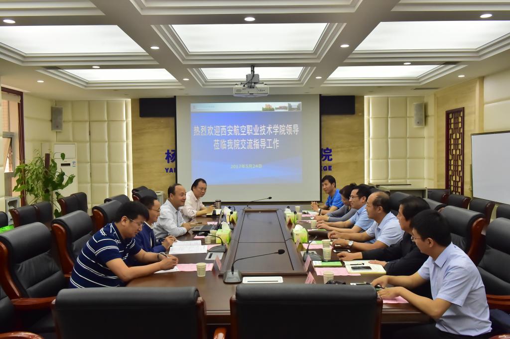 5月24日,西安航空职业技术学院党委书记周岩一行6人来院访谈交流。党委书记赵曼在醒钟楼204会议室会见了客人并进行座谈。党委宣传部、教务处、人事教师处、后勤基建处等相关部门负责人参加了座谈。