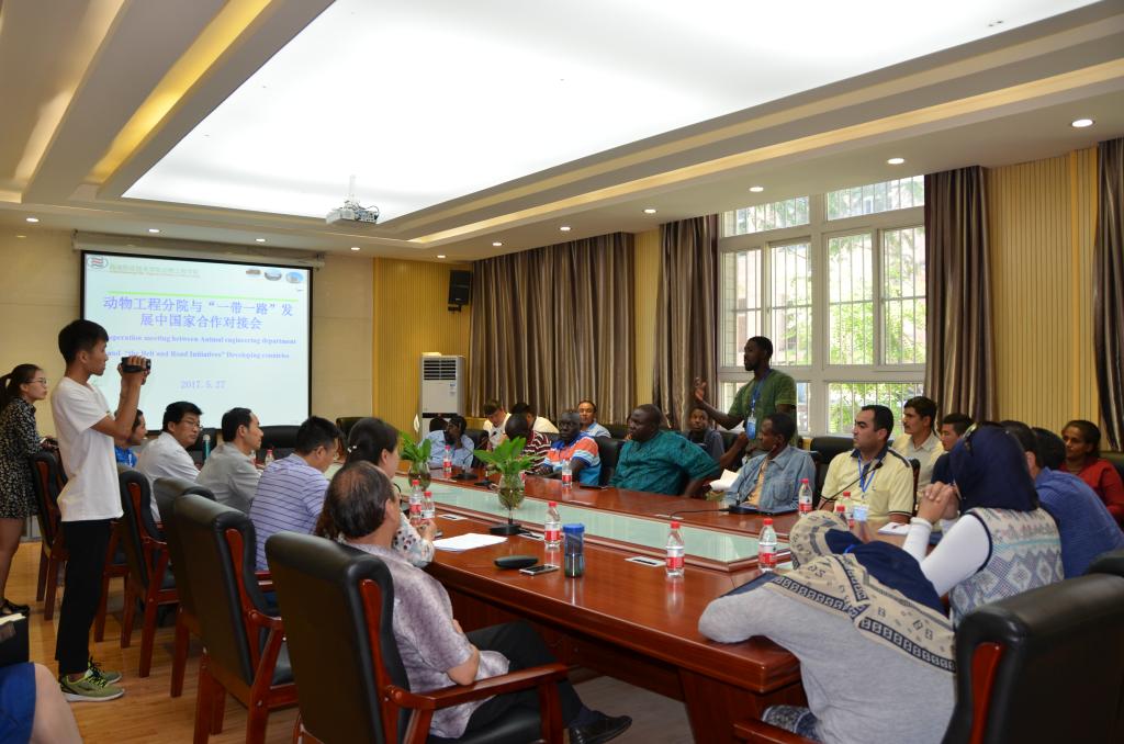 527日,动物工程分院召开座谈会,组织专家与在我院参加培训的埃及、蒙古、尼泊尔等8个“一带一路”发展中国家的50多名外国朋友进行座谈交流。