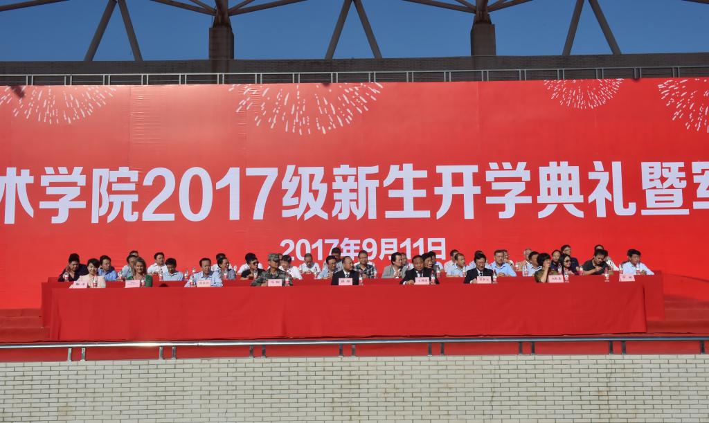 党委副书记任得元、副院长张永良、纪委书记刘粉莲,各分院(部)院长(主任)、党总支书记和处室负责人,各分院学工办主任、辅导员、新生班主任、2017级新生等7000余人参加开学典礼暨军训动员大会。