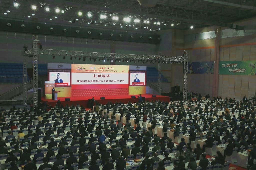 此次会议以“认真学习宣传贯彻党的十九大精神,完善职业教育和培训体系,深化产教融合、校企合作,推进中国特色高等职业教育再创辉煌”为主题,集中展示全国高职院校在坚定方向、特色办学、协调发展、共享开放等方面的经验和成果,共同探讨新时代背景下高等职业教育充分均衡发展的思路和举措。会议由全国高职高专校长联席会议主席董刚主持