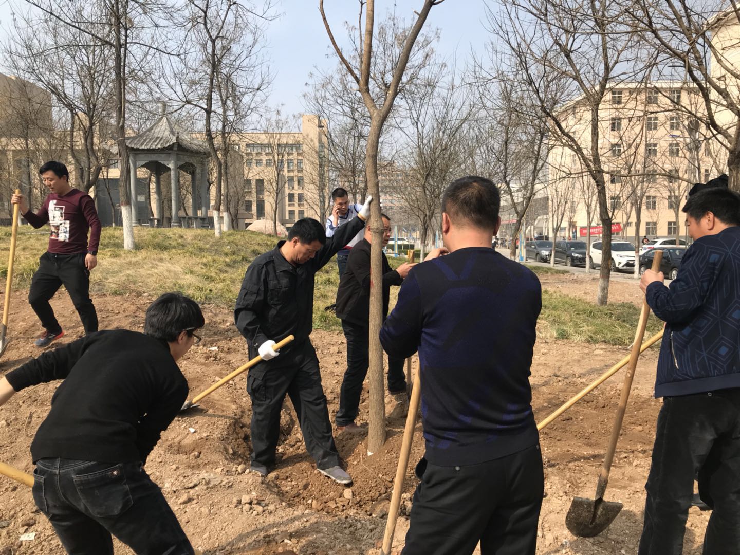 在第四十个植树节来临之际,后勤基建处组织干部职工在南校区开展了绿化校园义务植树活动。