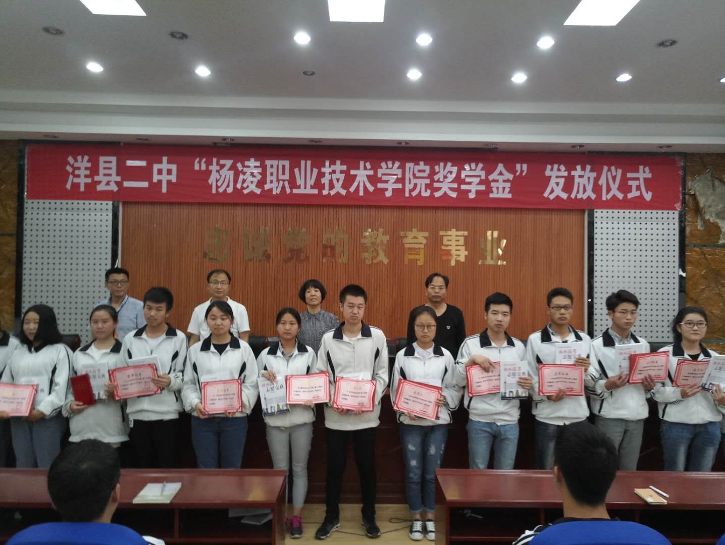 近日,我院分别在汉中市洋县第二高级中学、安康市汉阴中学举行奖学金发放仪式。学院纪委书记刘粉莲,招生就业处、文理分院负责人出席仪式,并为获奖学生颁发了荣誉证书和奖学金。