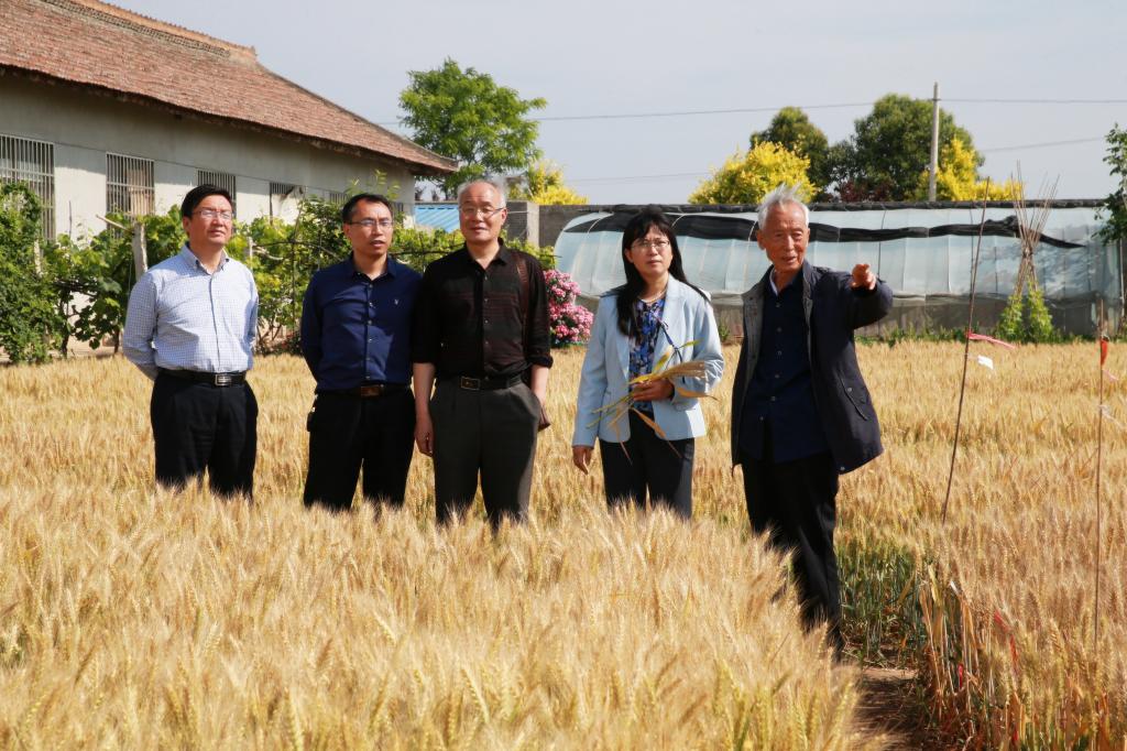 530上午党委书记陈宁,党委委员、组织部部长齐晓军,以及党政办公室、科研推广处生物工程分院等相关负责人一行,赴豆村农场观摩著名小麦育种专家、我院研究员赵瑜培育的优质强筋高产小麦新品种武农6号、武农611和大穗大粒优质高产小麦新品种武农981。