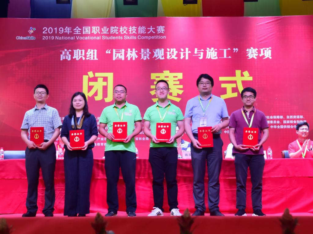 6月3日上午,我院学生参加全国职业院校技能大赛再传喜讯。在刚刚闭赛的2019年全国职业院校技能大赛(高职组)“园林景观设计与施工”赛项中,由我院林思、唐璇、贺涵、蔡鹏4名学生组成的代表队,在本次赛项中取得了一等奖的好成绩。