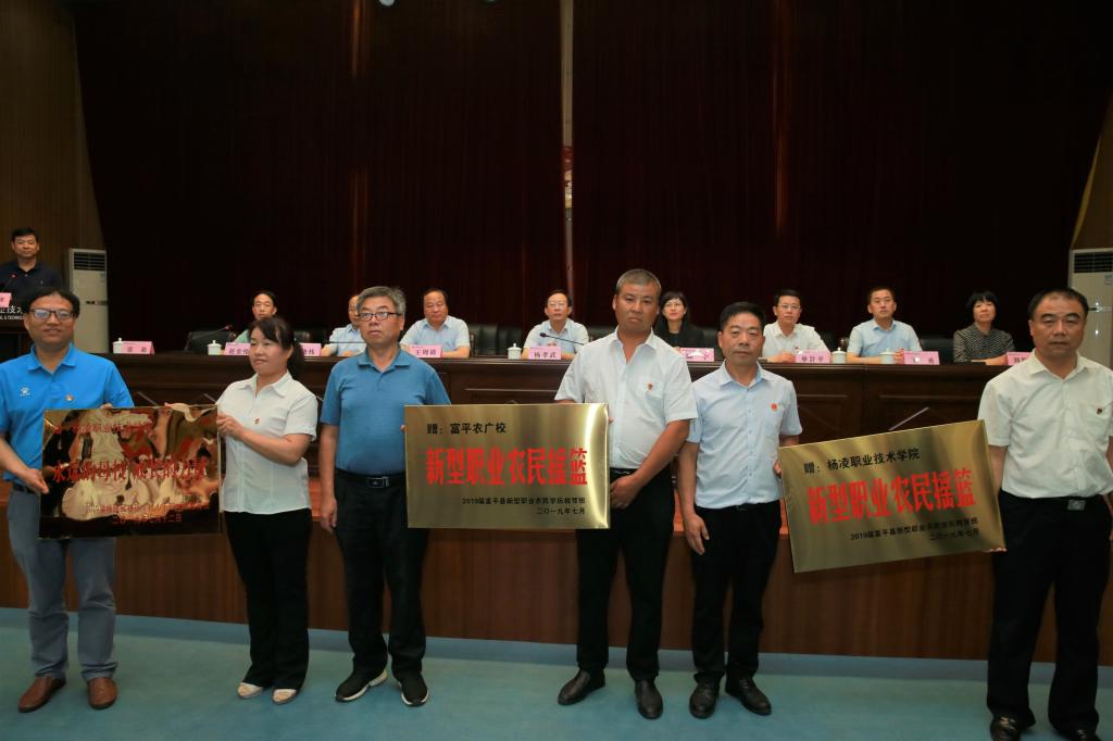 毕业典礼上,富平县职业农民班学员代表郭向阳、杨陵区村干部班学员代表徐群科,教师代表亢菊侠分别发言。富平县职业农民班学员、杨陵区村干部班学员为我院和富平县农广校赠牌。