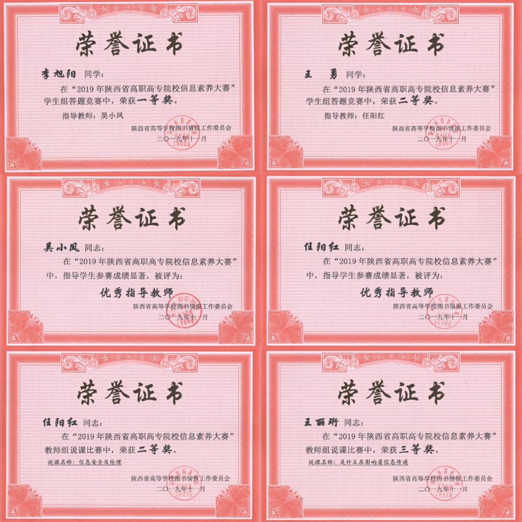 近日,首届陕西省高职高专院校信息素养大赛落幕。我院学生李旭阳、王勇分别荣获学生组竞赛一等奖、二等奖,并成功入围全国赛。