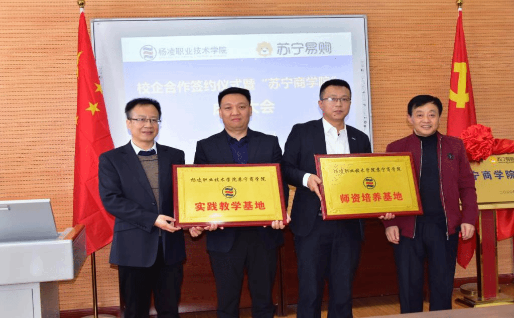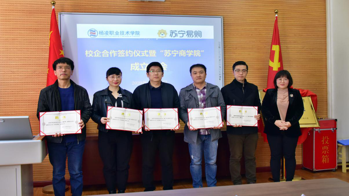 会上,刘粉莲与程峰共同为“苏宁商学院”揭牌,向程峰颁发客座教授聘书。拜存有宣布了“苏宁商学院”领导班子成员名单和主要职责。校企双方签订了《苏宁商学院合作协议书》。我校向苏宁易购集团授予“实践教学基地”和“师资培养基地”牌匾。苏宁易购集团授予我校“苏宁易购人才培养基地”和“苏宁易购员工培训基地”牌匾。肖强代表苏宁易购向学校捐赠10台电脑,设立苏宁奖学金。