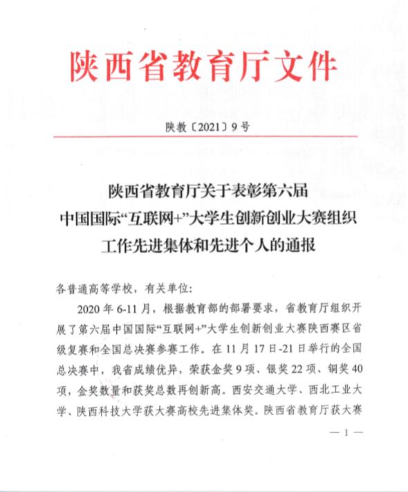 5月13日上午,第七届中国国际“互联网+”大学生创新创业大赛陕西赛区启动会在西安交通大学召开,会上宣读了《关于表彰第六届中国国际“互联网+”大学生创新创业大赛组织工作先进集体和先进个人的通报》,部署了陕西省第七届大赛。我校荣获先进集体2项,先进个人3人。