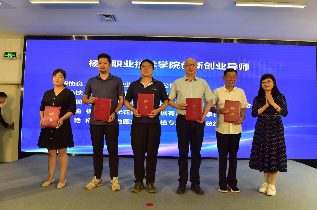 史高领、陈宁共同为杨凌职业技术学院区校融合科创中心揭牌;史高领、王周锁共同为杨凌职业技术学院大学生创新创业教育实践基地揭牌。陈宁还现场为一批知名企业家、资深创业导师、行业专家颁发了聘书。杨凌职业技术学院构建创新创业导师体系,大力促进大学生创新创业新局面,以产教融合为抓手,逐步布局校内校外相结合的导师建设体系,希望能借助他们的才智和经验来指导、带动、帮助更多创业者成功创业。