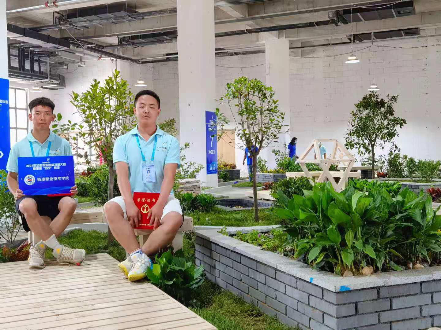 “园艺”赛项为团队项目,每个参赛队由2位选手组成,要求在规定时间内相互配合并完成赛题的施工。赛题包含木作、砌筑、铺装、水景营造、植物造景等模块,各模块有机结合在一起,组成一件园艺作品。