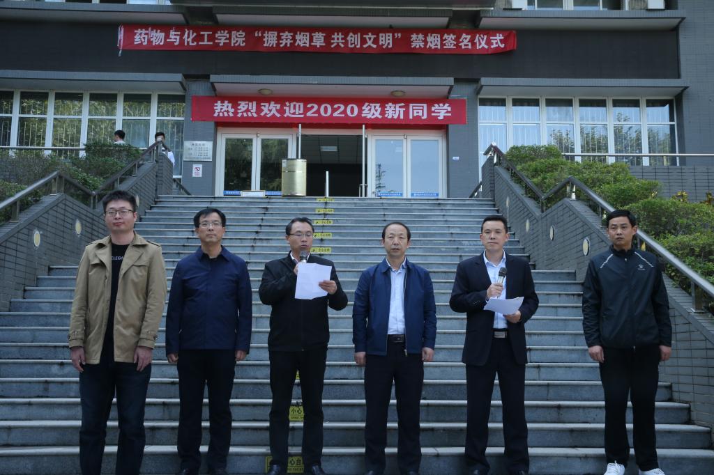 10月16日,药物与化工分院在西校区举行“摒弃烟草 共创文明”禁烟签名活动。学校创建无烟校园领导小组办公室副主任、后勤保障处副处长侯煜,党委学工部副部长、团委书记陈吼应邀参加活动,药物与化工学院党总支书记刘根牢、院长周博、副院长龙凤来,以及全体辅导员、班主任,700多名学生共同参加了签名活动。