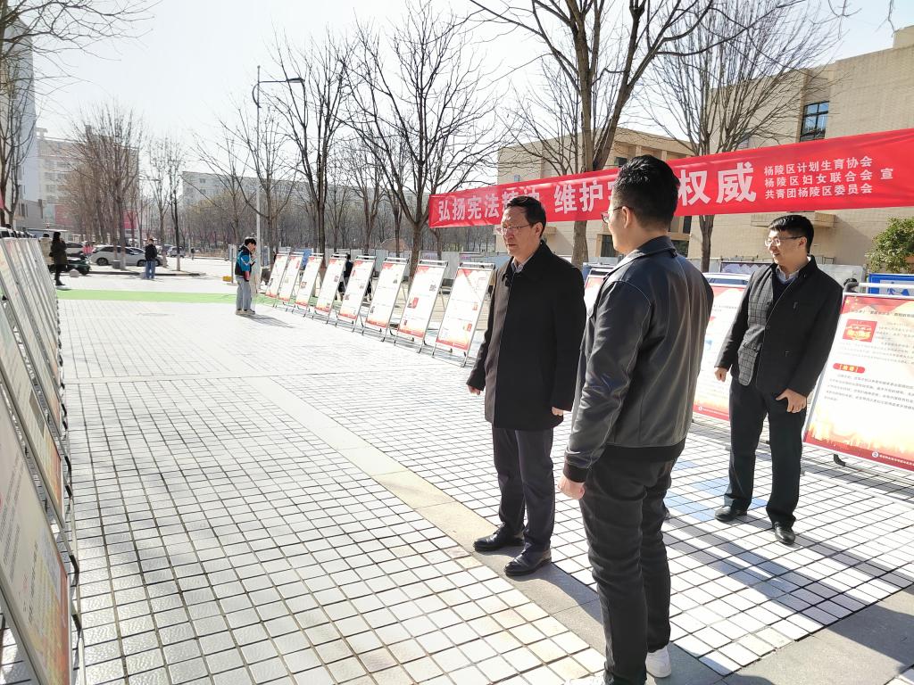 ——开展网络普法宣传活动。在124日的“国家宪法日”,联合杨陵区人民法院携手开展网络普法宣传活动。在法院负责人带领下,师生们先后参观了诉讼服务中心、法治宣传展示区、文化长廊、审判法庭和办公室等场所,通过听取讲解、实地参观和对话交流,身临其境地学习法院审判执行工作,感受浓厚的法治文化氛围。在直播环节,师生们全程观看网络直播,线上线下同步互动。随后,法院的法官干警同师生肃穆站立,手捧《宪法》和在线网友共同诵读了宪法,通过零距离感受司法,深刻体会宪法法律就在身边。