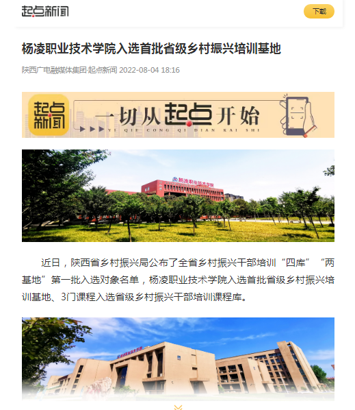 近日,陕西省乡村振兴局公布了全省乡村振兴干部培训“四库”“两基地”第一批入选对象名单,杨凌职业技术学院入选首批省级乡村振兴培训基地、3门课程入选省级乡村振兴干部培训课程库。