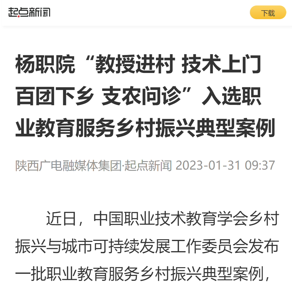 杨凌职业技术学院相关负责人表示:学院将全面开展职业教育助力乡村振兴实用人才培养、农业技术服务、理论攻关研究、咨政服务,进一步探索职业教育服务乡村振兴的新路径,创新职业教育产教融合的新模式,为乡村振兴提供人才保障和技术支持,在乡村振兴新征程上贡献杨职智慧和力量。(起点新闻记者 王锦)