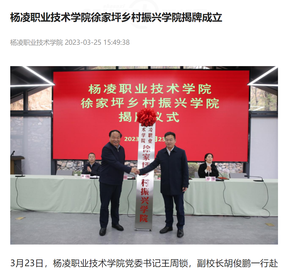 【陕西头条】杨凌职业技术学院徐家坪乡村振兴学院揭牌成立