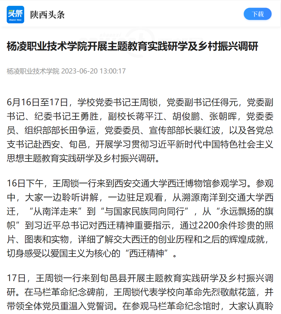 【陕西头条】杨凌职业技术学院开展主题教育实践研学及乡村振兴调研