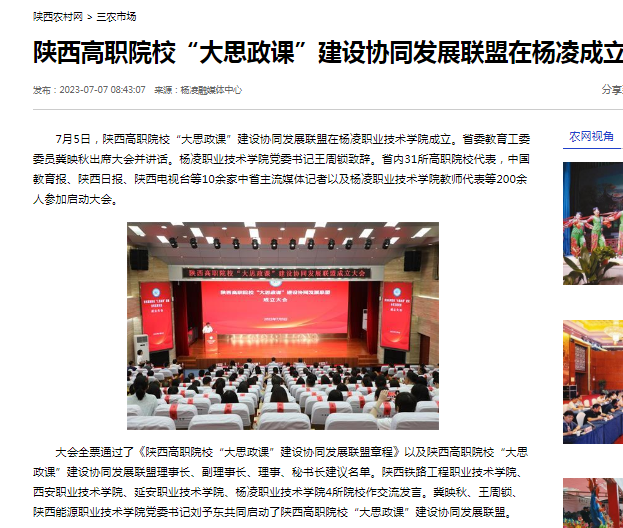 【陕西农村网】陕西高职院校“大思政课”建设协同发展联盟在杨凌成立