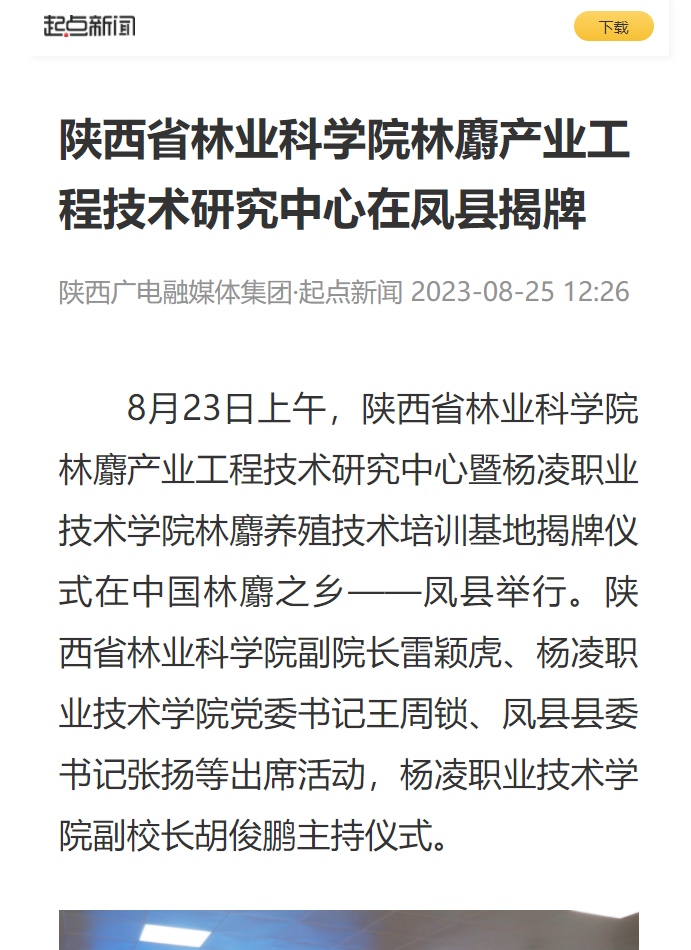 【起点新闻】陕西省林业科学院林麝产业工程技术研究中心在凤县揭牌