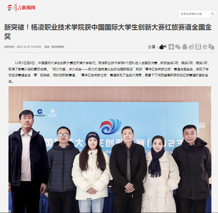 【群众新闻网】新突破!杨凌职业技术学院获中国国际大学生创新大赛红旅赛道全国金奖