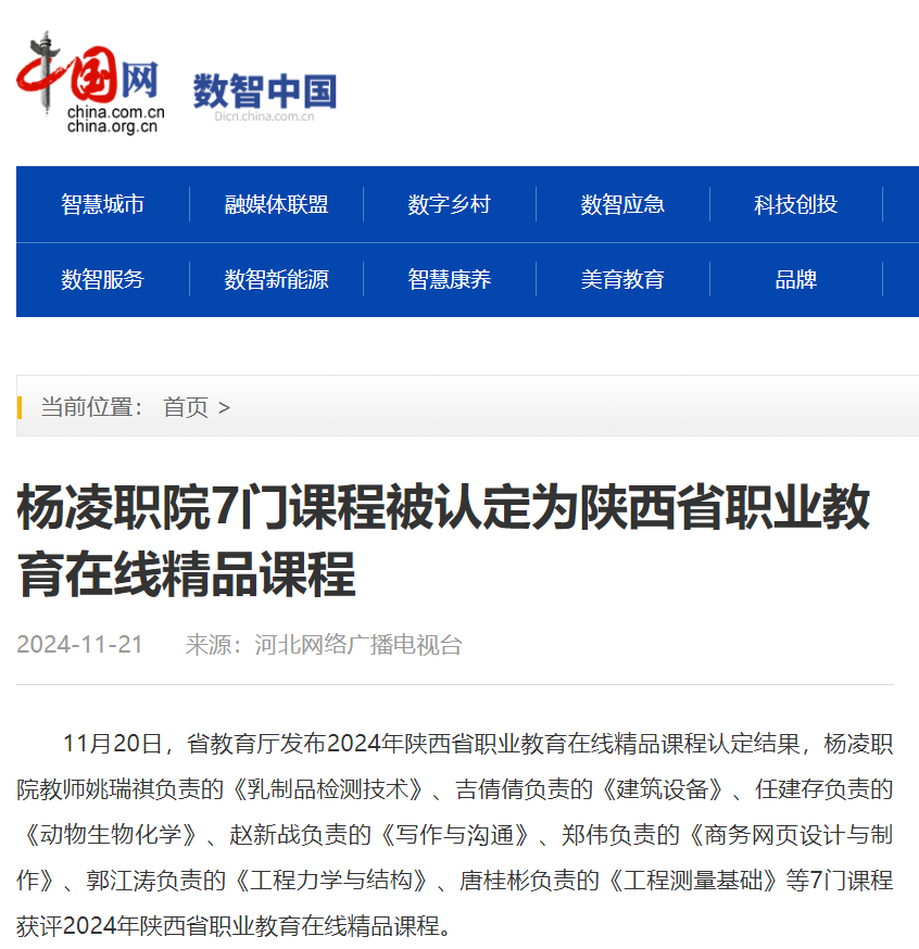 【中国网】杨凌职院7门课程被认定为陕西省职业教育在线精品课程
